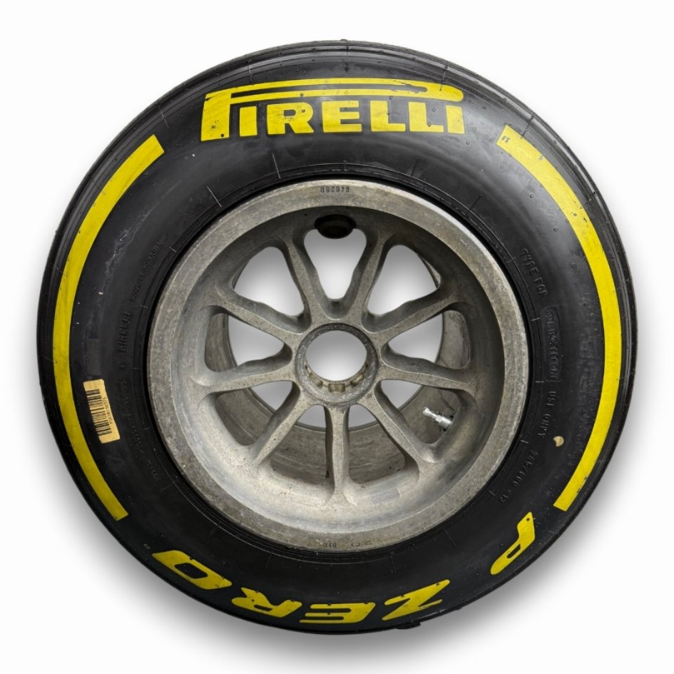 This Ferrari wheel is race used and comes from the 2021 Formula One season, during which it was used by Charles Leclerc and Carlos Sainz.