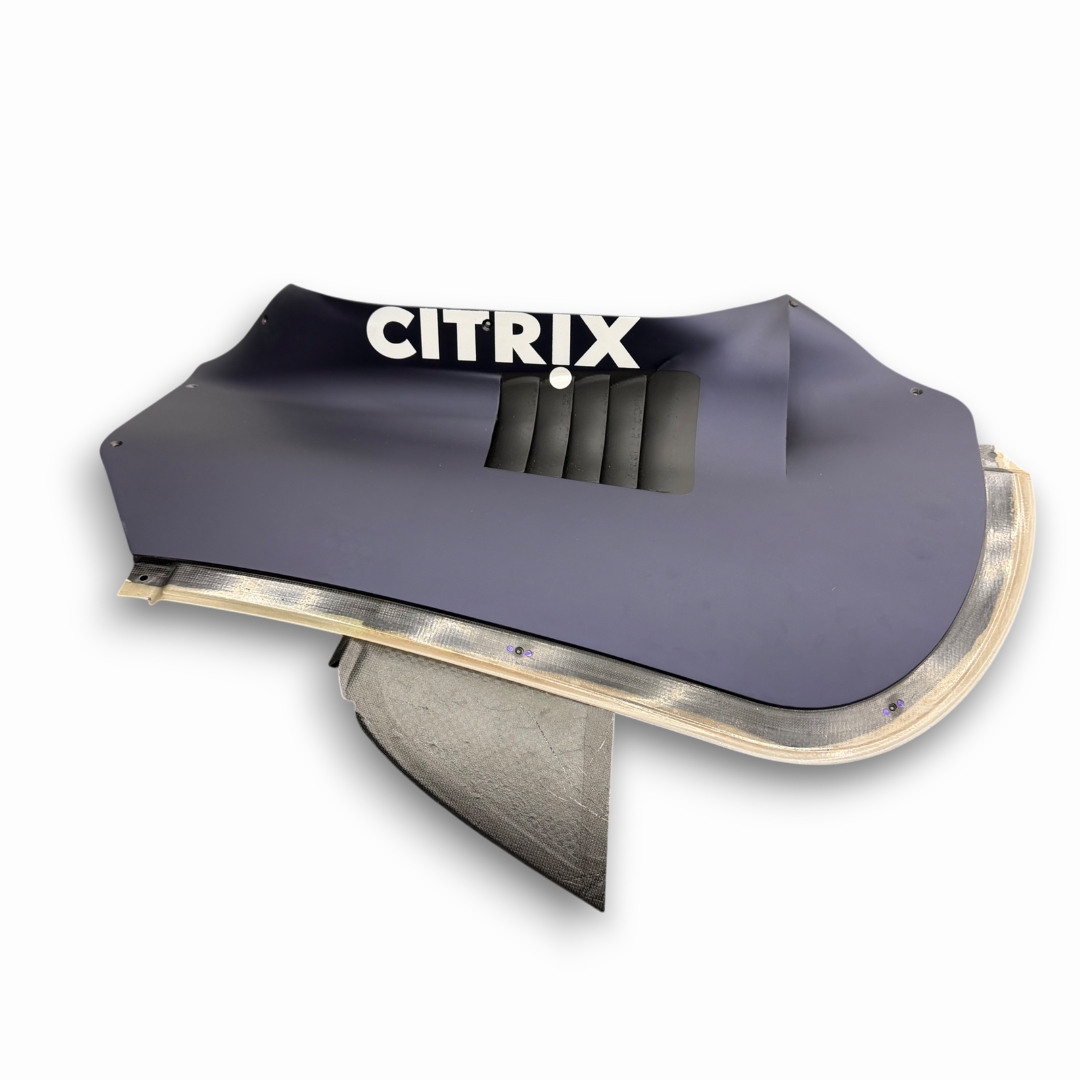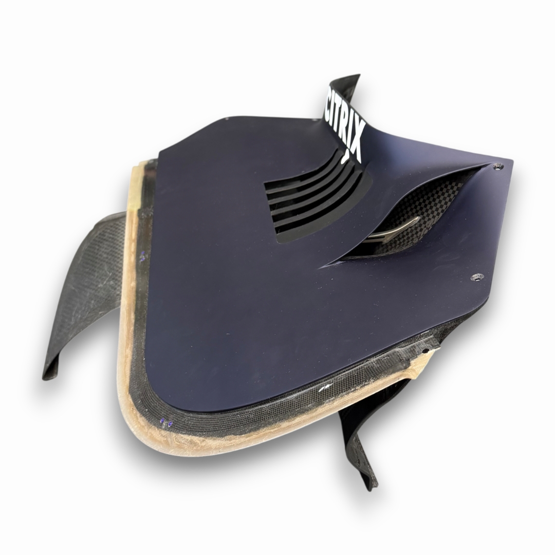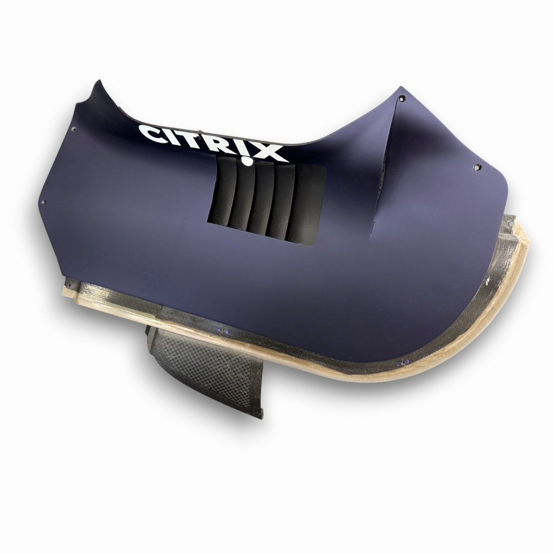 The radiator exit panel forms a critical section of the car’s rear bodywork, positioned at the trailing edge of the sidepod assembly where hot air is expelled from the cooling system. Its geometry is carefully engineered to manage the extraction of heat from the radiators while minimising aerodynamic disruption. By controlling how hot air exits the bodywork, this component directly influences rear downforce stability, airflow efficiency toward the diffuser, and overall car balance.