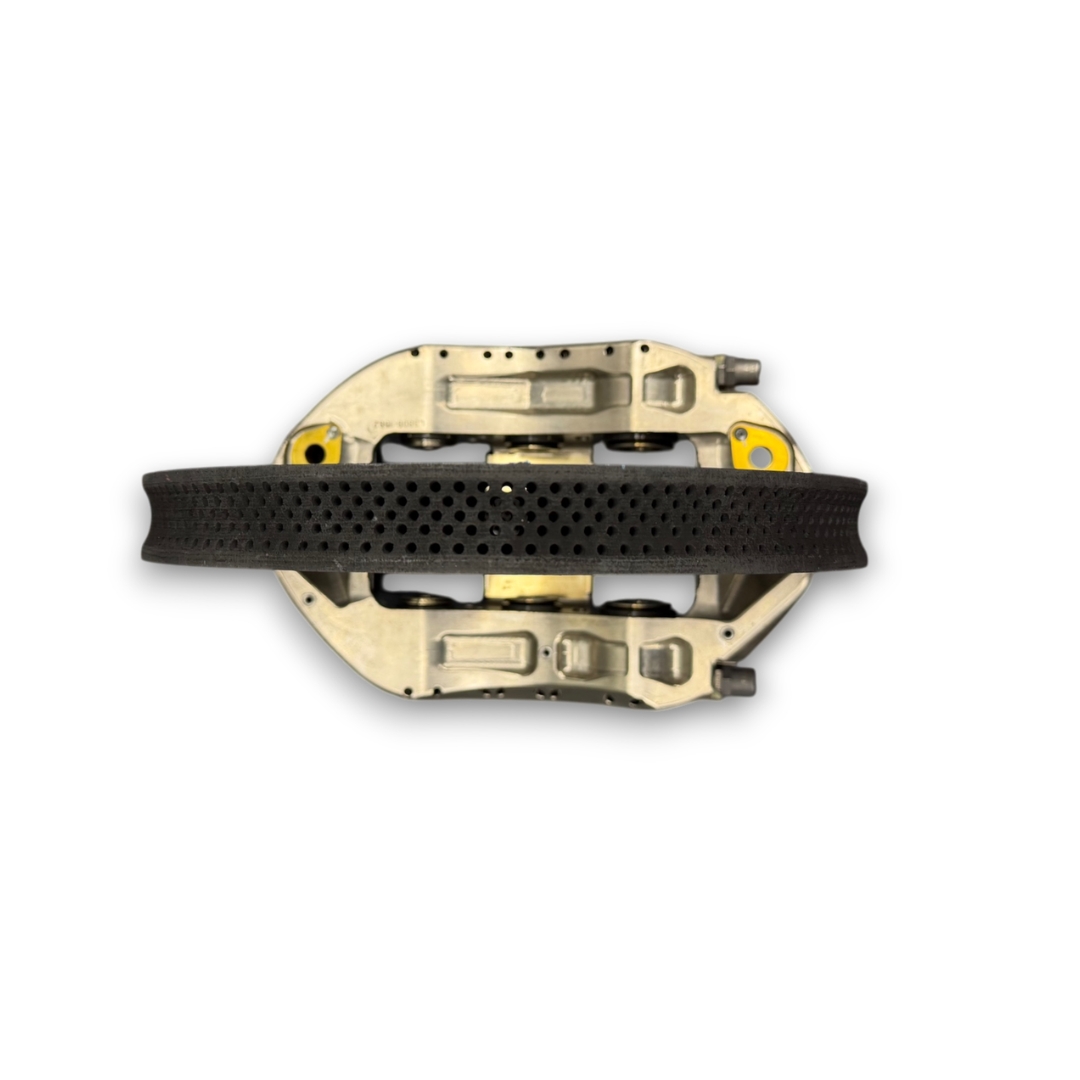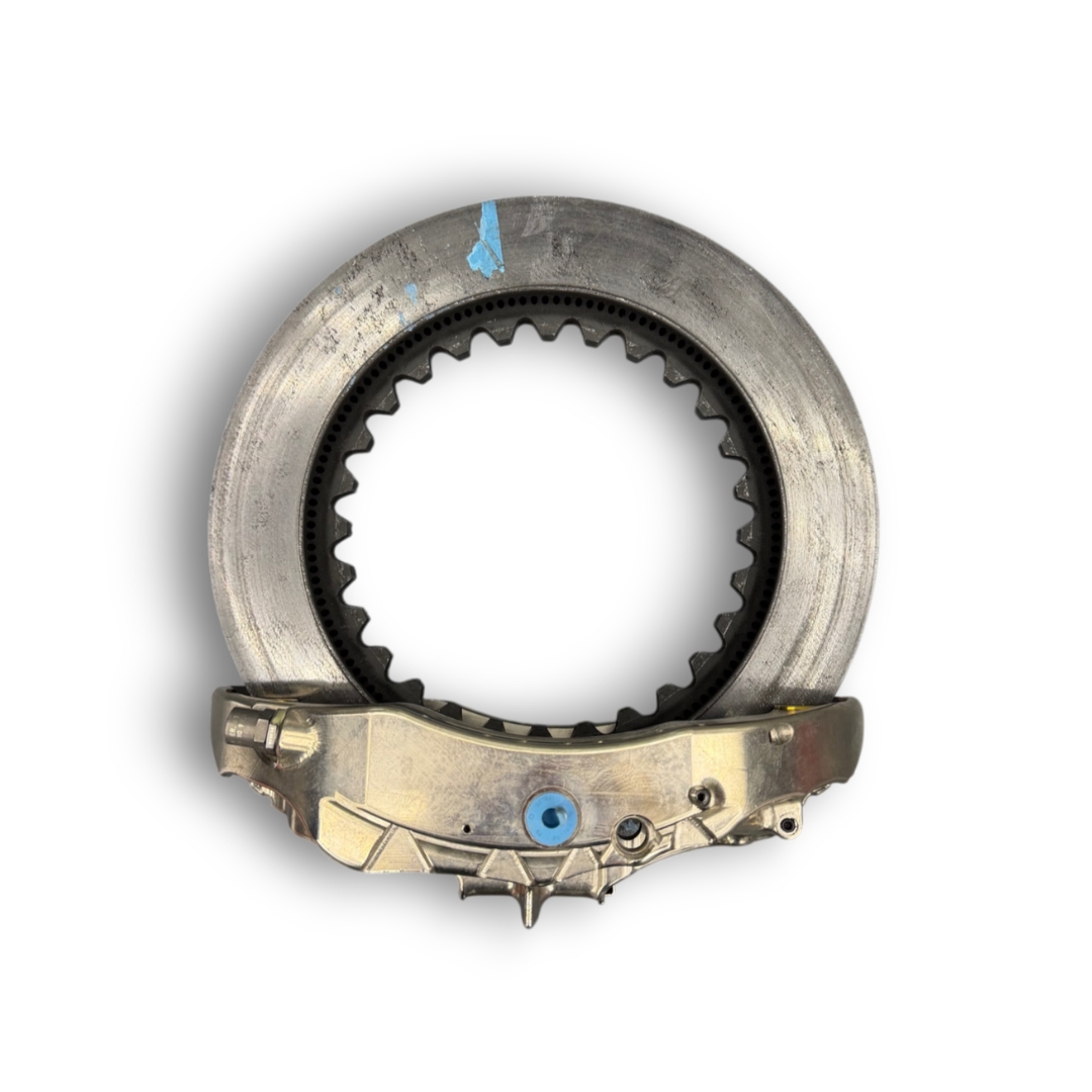 The assembly formed part of the high-performance braking system of the team’s 2025 Formula One challenger, the Red Bull RB21, campaigned during the 2025 FIA Formula One World Championship by Max Verstappen. Working together as part of the braking system, the carbon brake disc, caliper, and brake pads delivered the immense stopping power required in Formula One, operating under extreme temperatures and forces generated during Grand Prix competition.