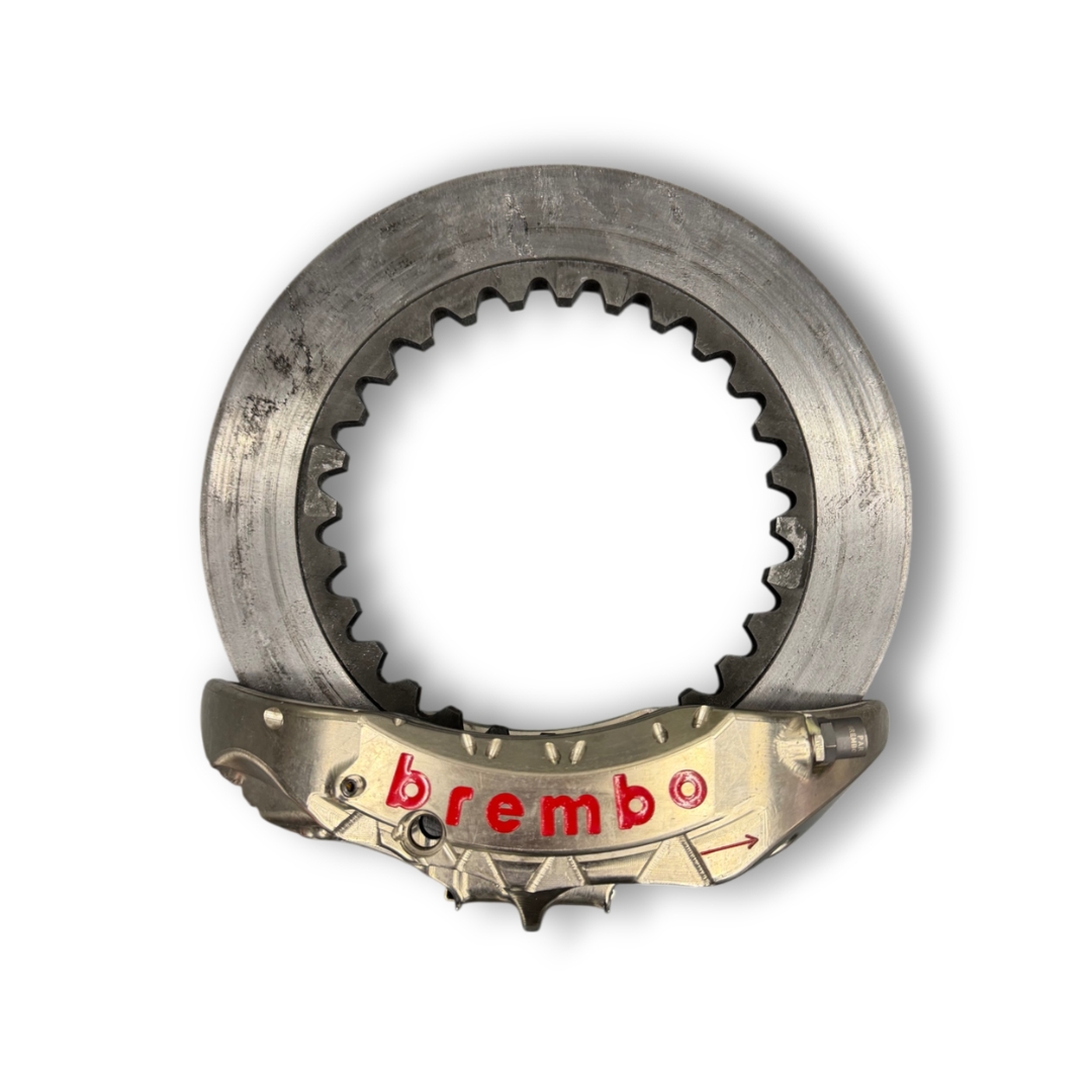 The brake disc, caliper, and accompanying brake pads are supplied with a Certificate of Authenticity and include a lifetime guarantee of authenticity.