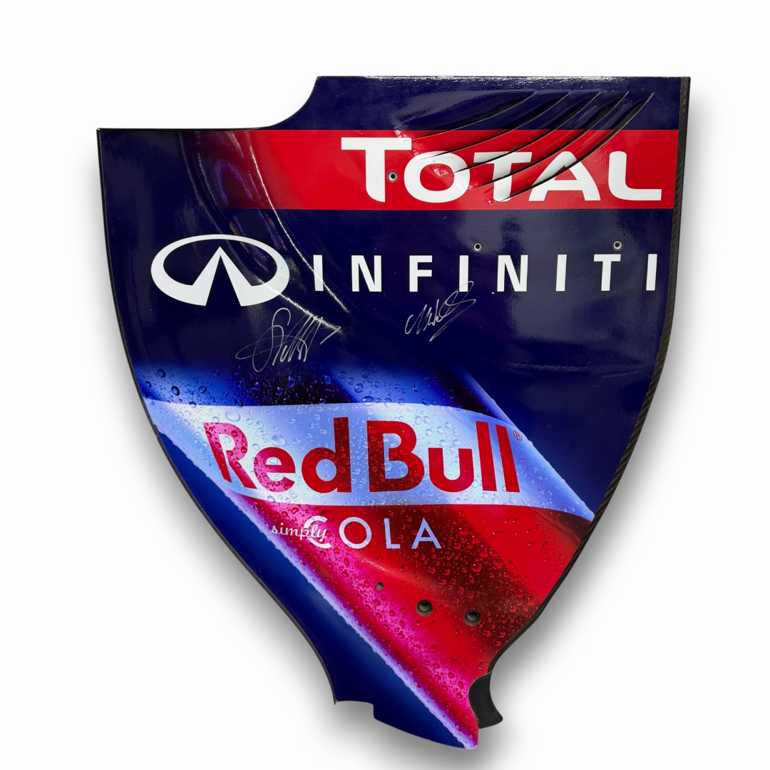 This signed race-used rear wing endplate offers a direct connection to Red Bull Racing’s championship-winning 2011 Formula One season and to two of the team’s most successful drivers.